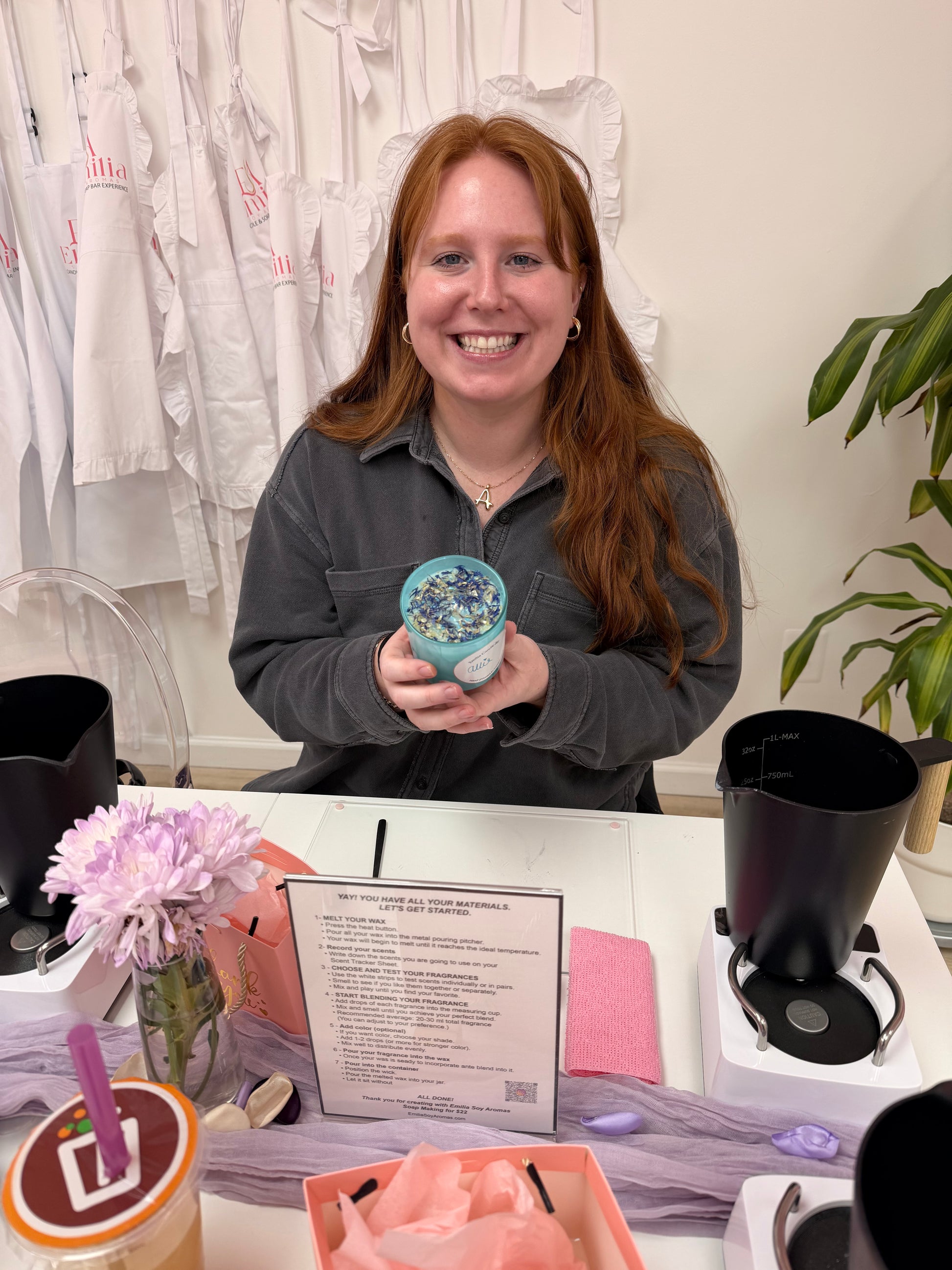 - Sip on a special drink from Emilia while creating your candle + soap 💕