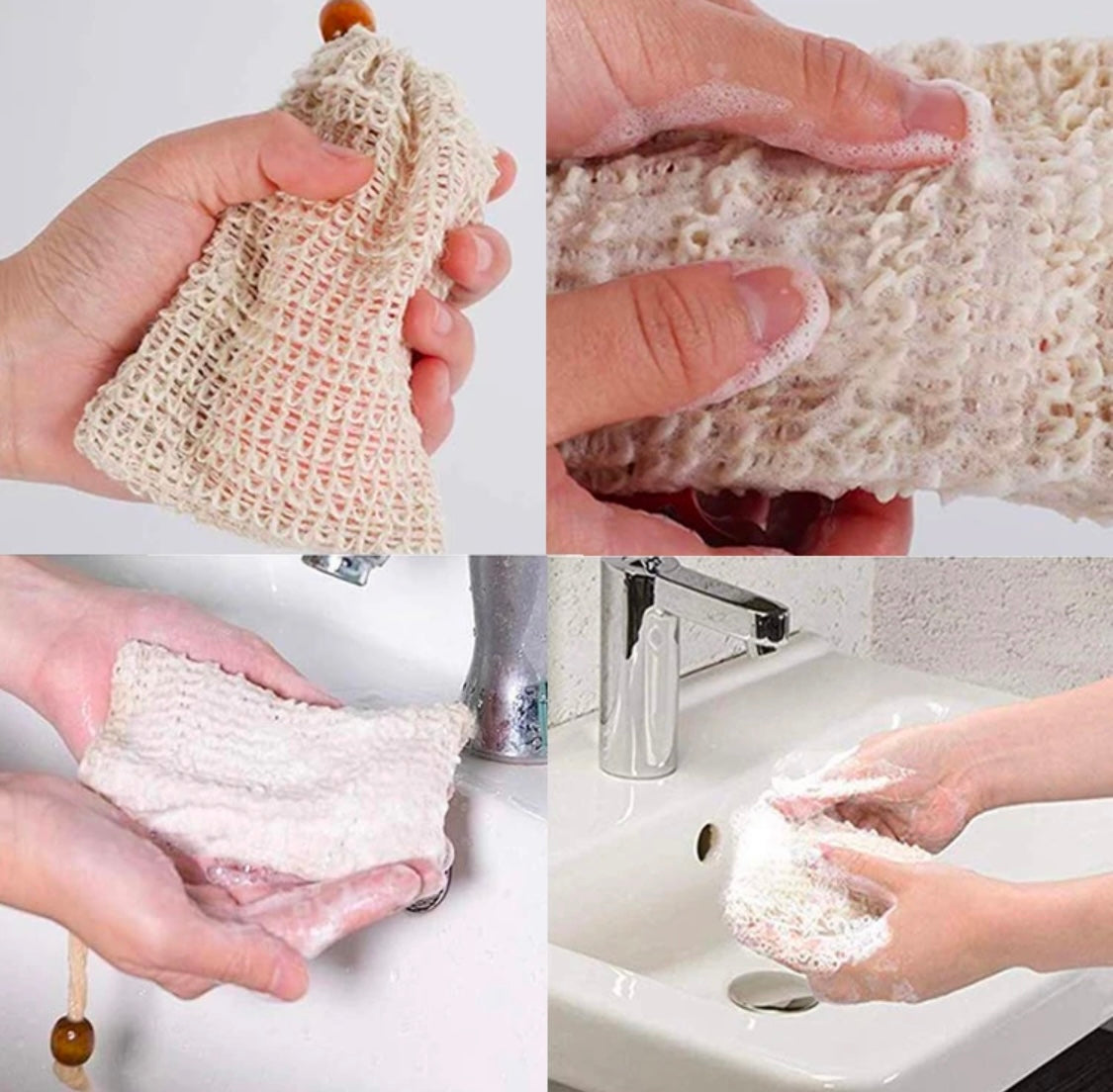 Our natural soap bag helps your handmade soaps last longer while preventing soap waste. It creates a rich, creamy lather and provides gentle exfoliation, leaving your skin soft and refreshed.